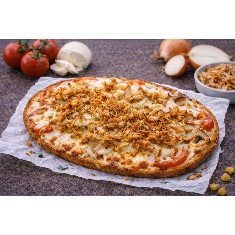 Tomates en rondelles , mozzarella , champignons , blanc de poulet , oignons